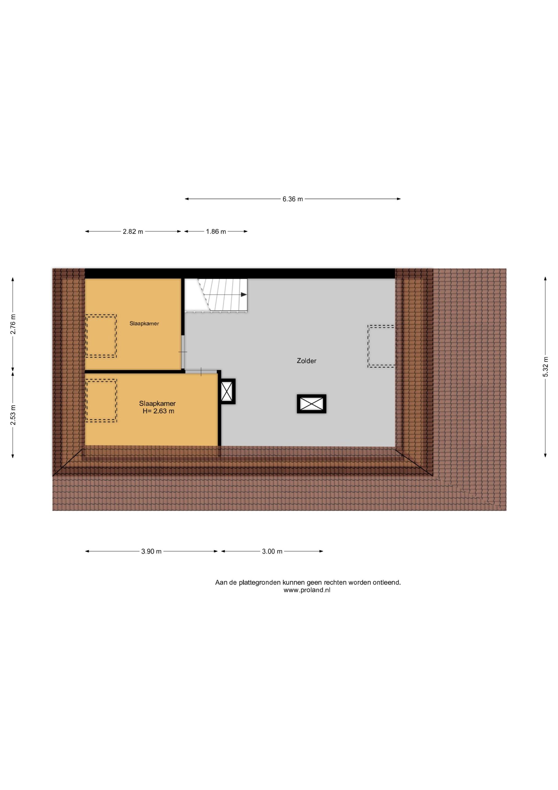 2e Verdieping: Zolder met 2 slaapkamers (ca 7,8 en 9,9 m2) en een extra zolder. De zeer grote overloop biedt de mogelijkheid voor een extra slaapkamer. Een aan- en afvoer voor het eventueel te plaatsen sanitair is aanwezig.