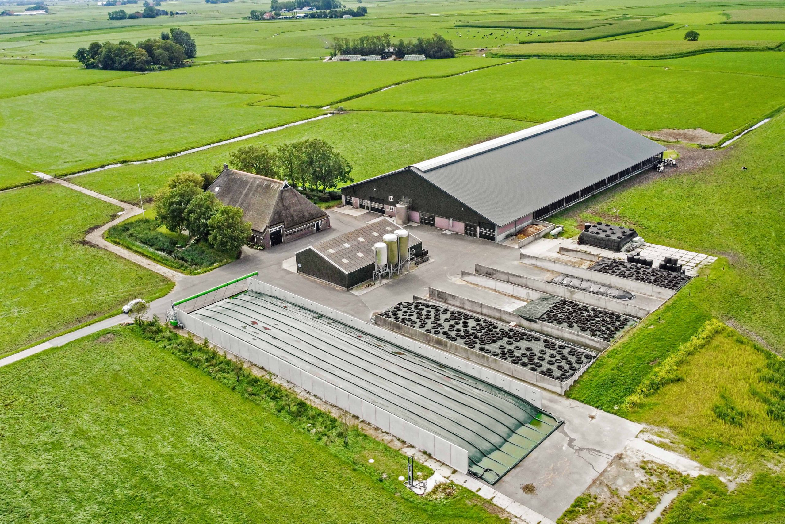 Voor de stal is een ondergrondse put waar het regenwater wordt opgevangen. Dit regenwater wordt gebruikt om de stal/machines schoon te spuiten.