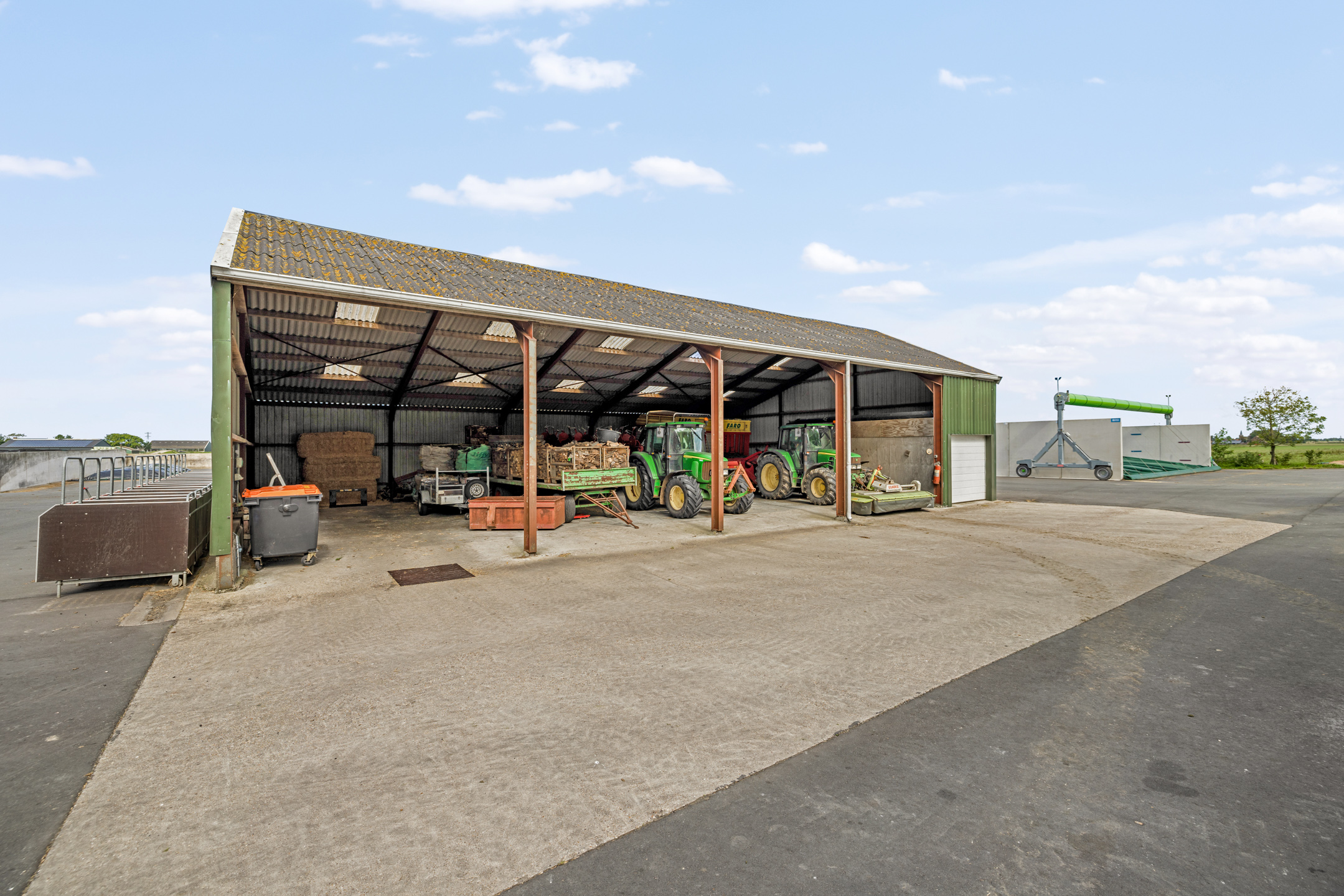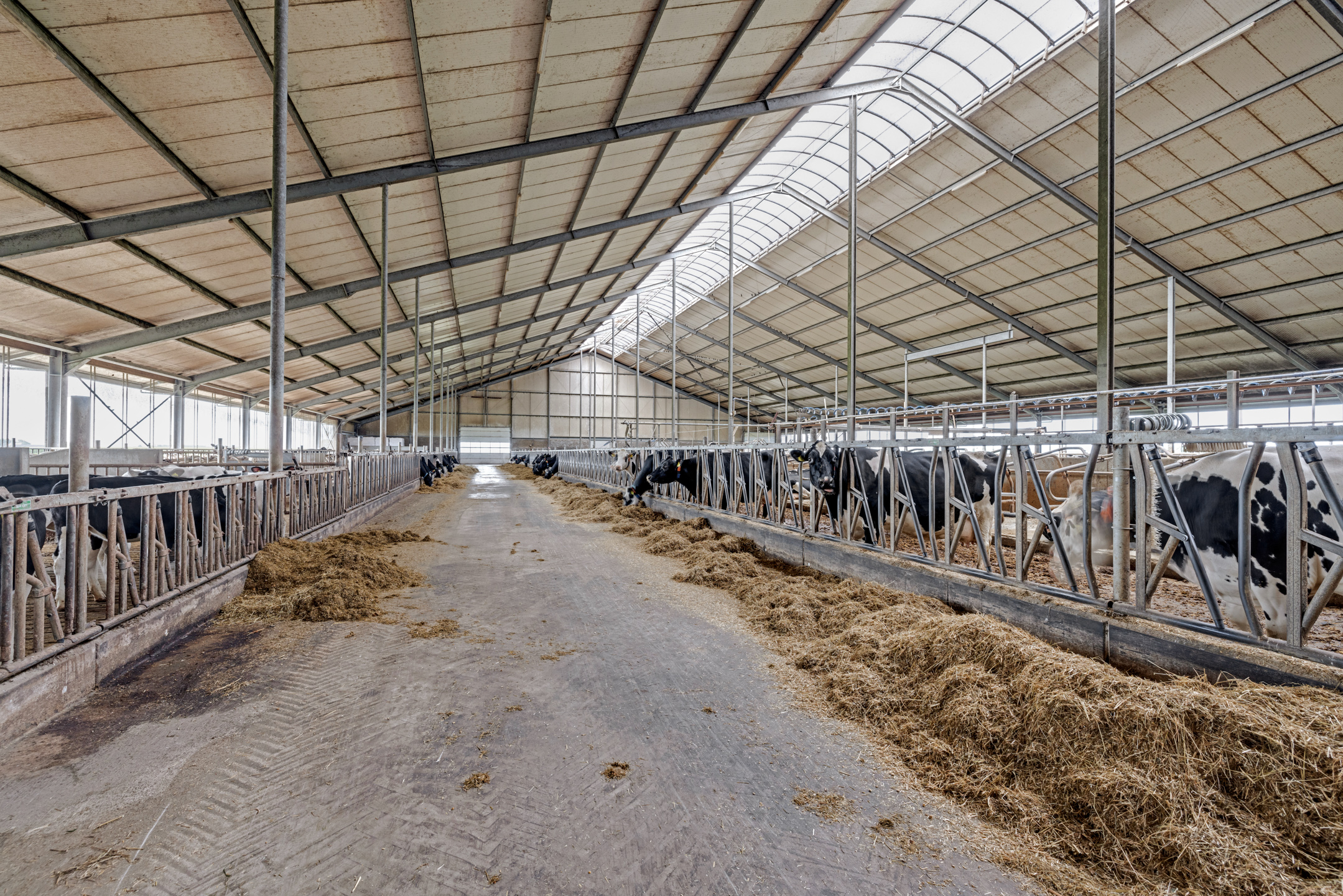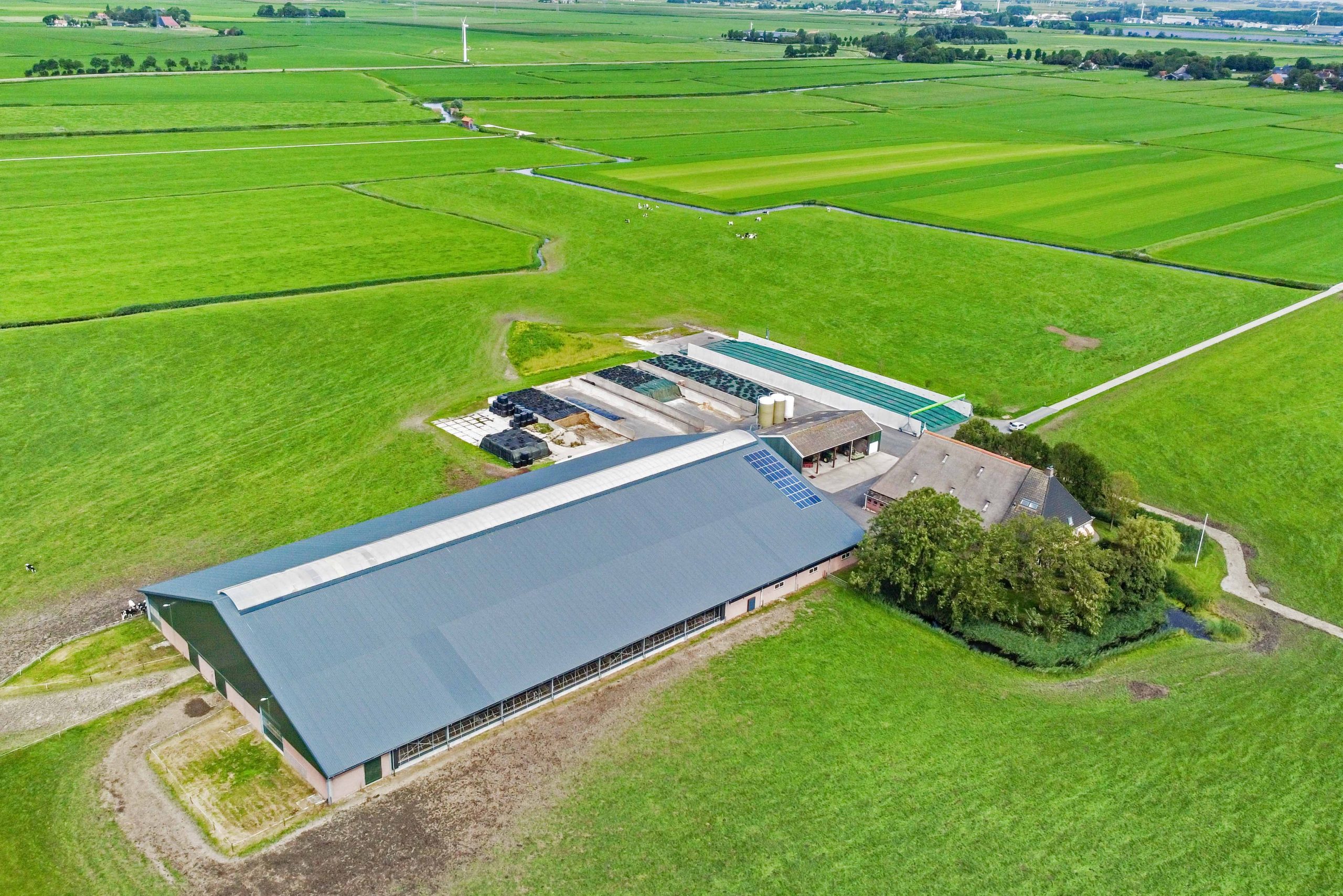 Deze ruim opgezette Maatlat stal (MDV) is gebouwd in 2016 waarbij rekening is gehouden met goede looplijnen en arbeid efficiëntie. De stal heeft circa 7.500 m2 mestopslag met aan de voorzijde van de stal een grote pomput van waaruit de mest kan worden uitgereden.