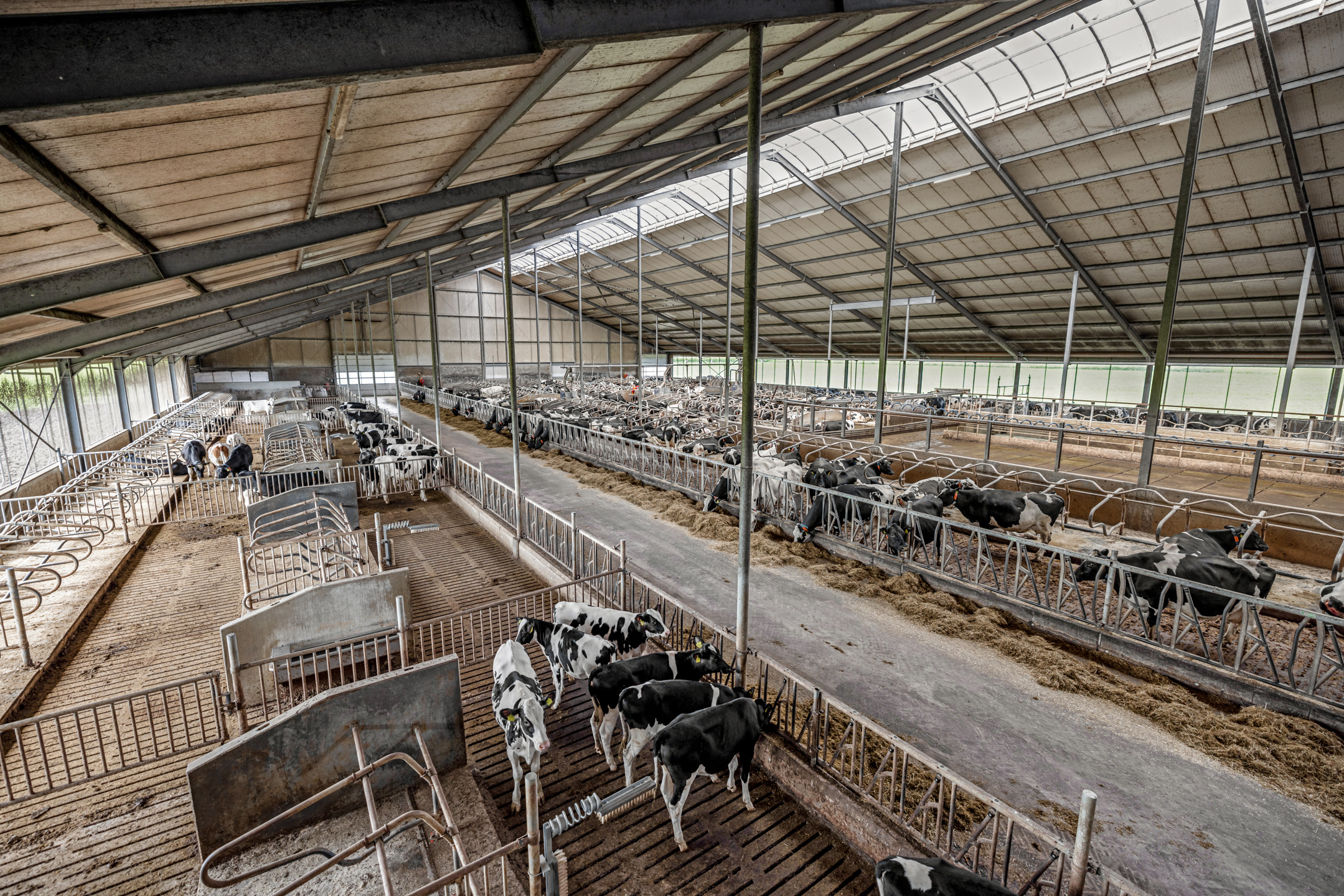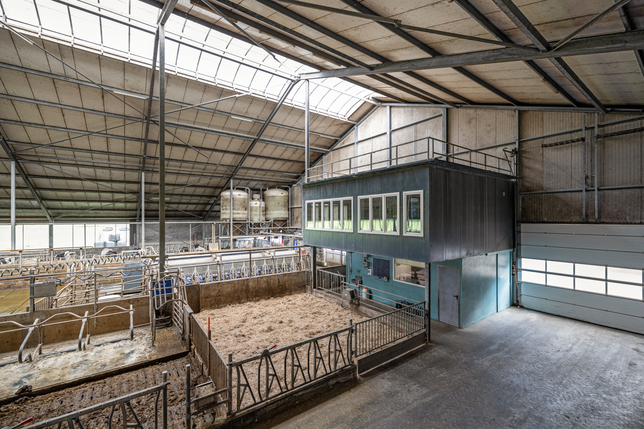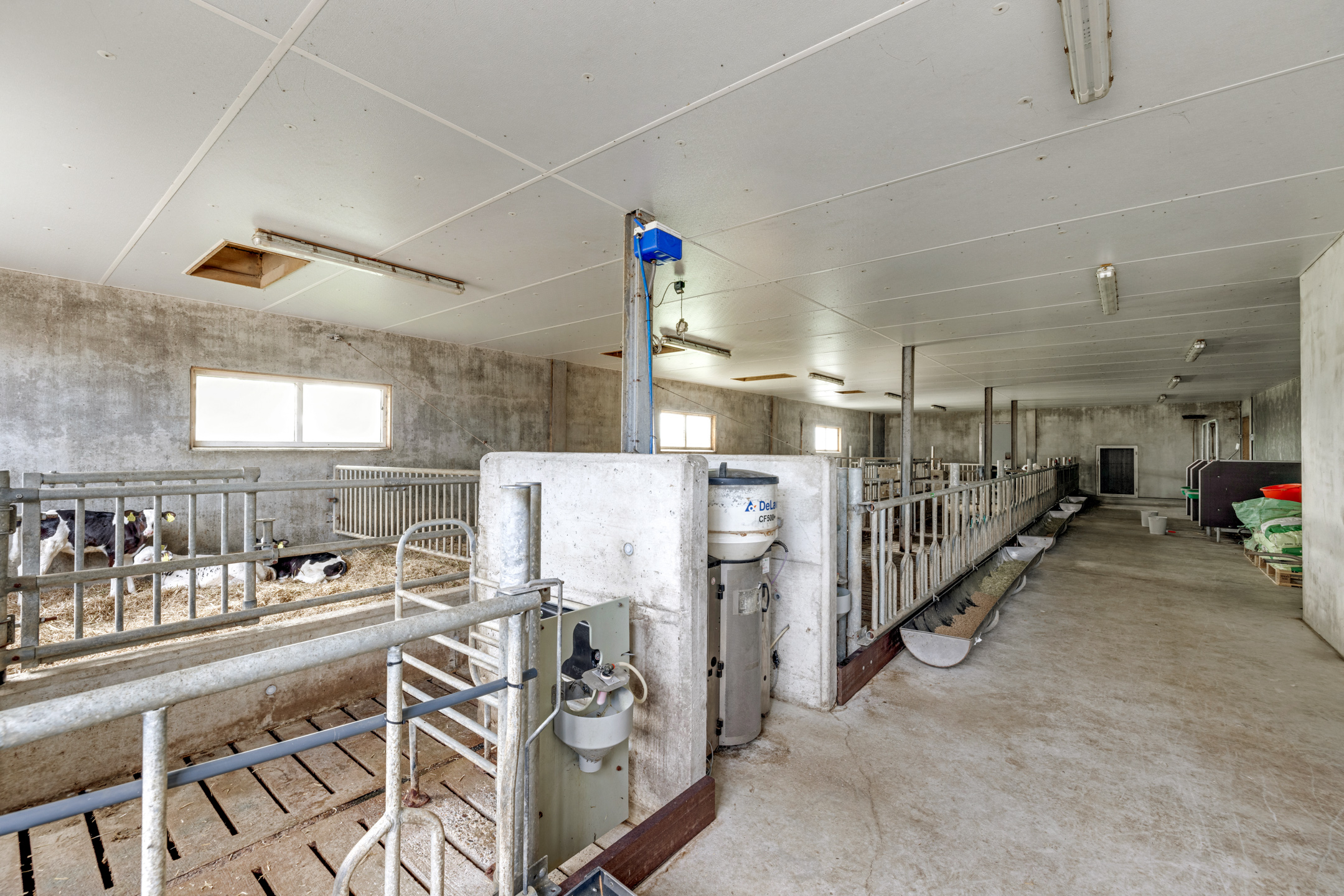 Het betreft een 2+6+0 rijïge stal met een ecovloer bedekt met rubber (bij de melkkoeien) en een inpandig jongveegedeelte voor de kalveren van 0 tot 6 maanden. Het jongveegedeelte is voorzien van een ventilatiesysteem en een houten zolder vanwaar met de boxen van stro kan voorzien. De hokken zijn met een shovel uit te mesten. De kalveren krijgen melk via een drinkautomaat en er is een separate melkkeuken met aanrecht.
