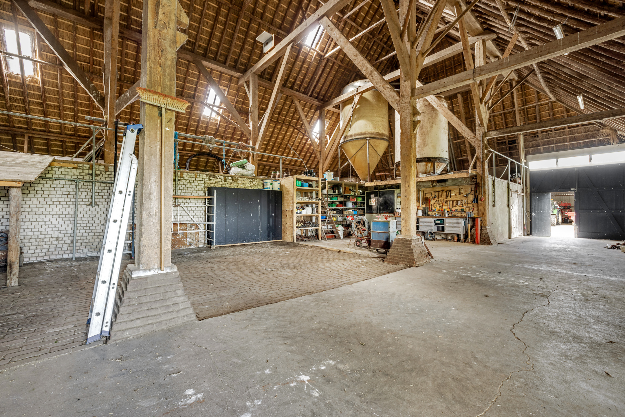 De schuur ( circa 418 m2) is grotendeels in gebruik als berging en als jongveestal. De vloer bestaat grotendeels uit beton en deels uit klinkers. Het geheel is opgetrokken uit houten gebinten en steens muren. Het dak (nokhoogte circa 13 meter) is bedekt met riet waarbij de zuidelijke dakzijde in 2019 geheel is vernieuwd. De grote schuurdeuren en de kleine schuurdeur zijn in 2020 vernieuwd.