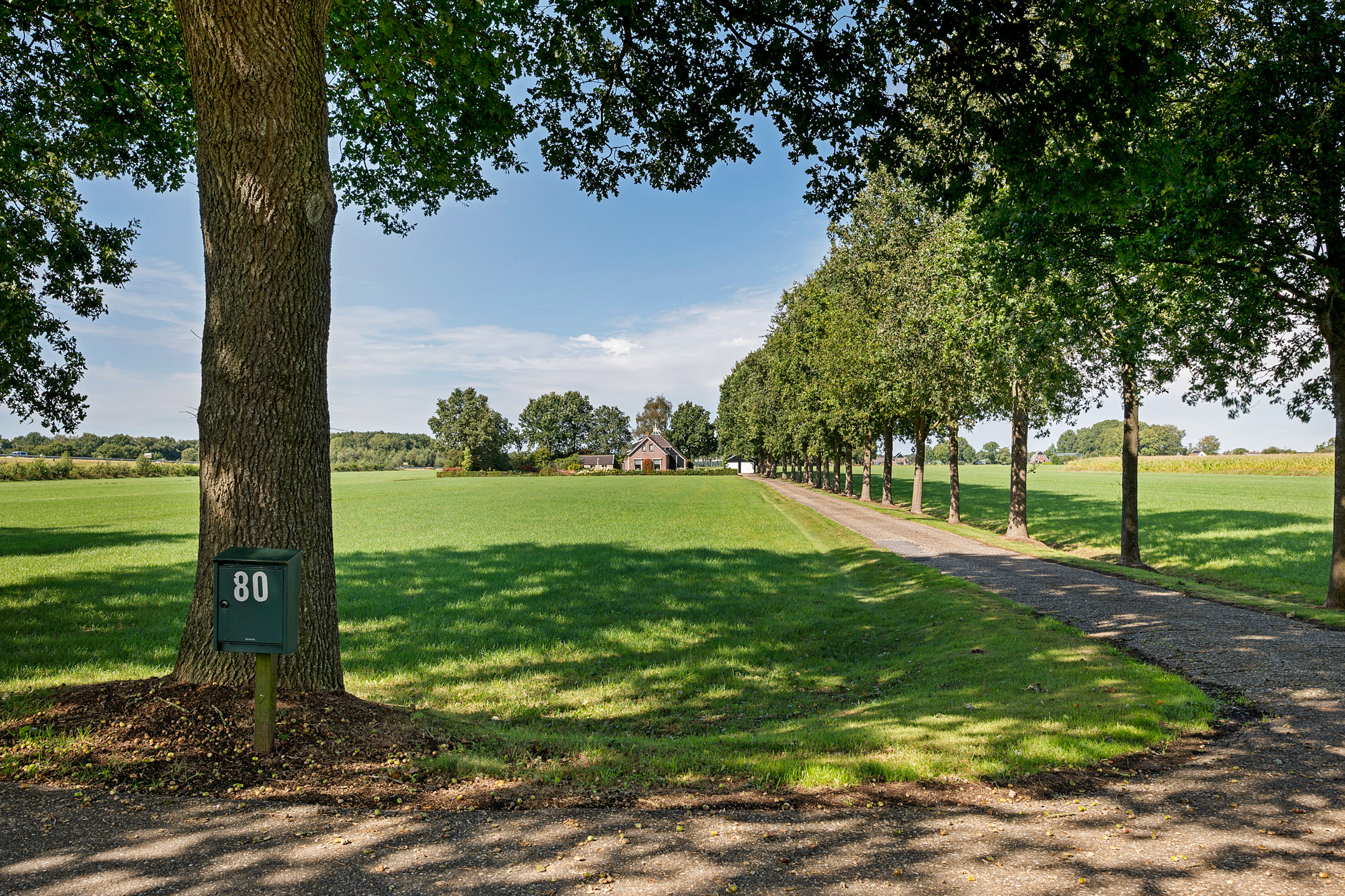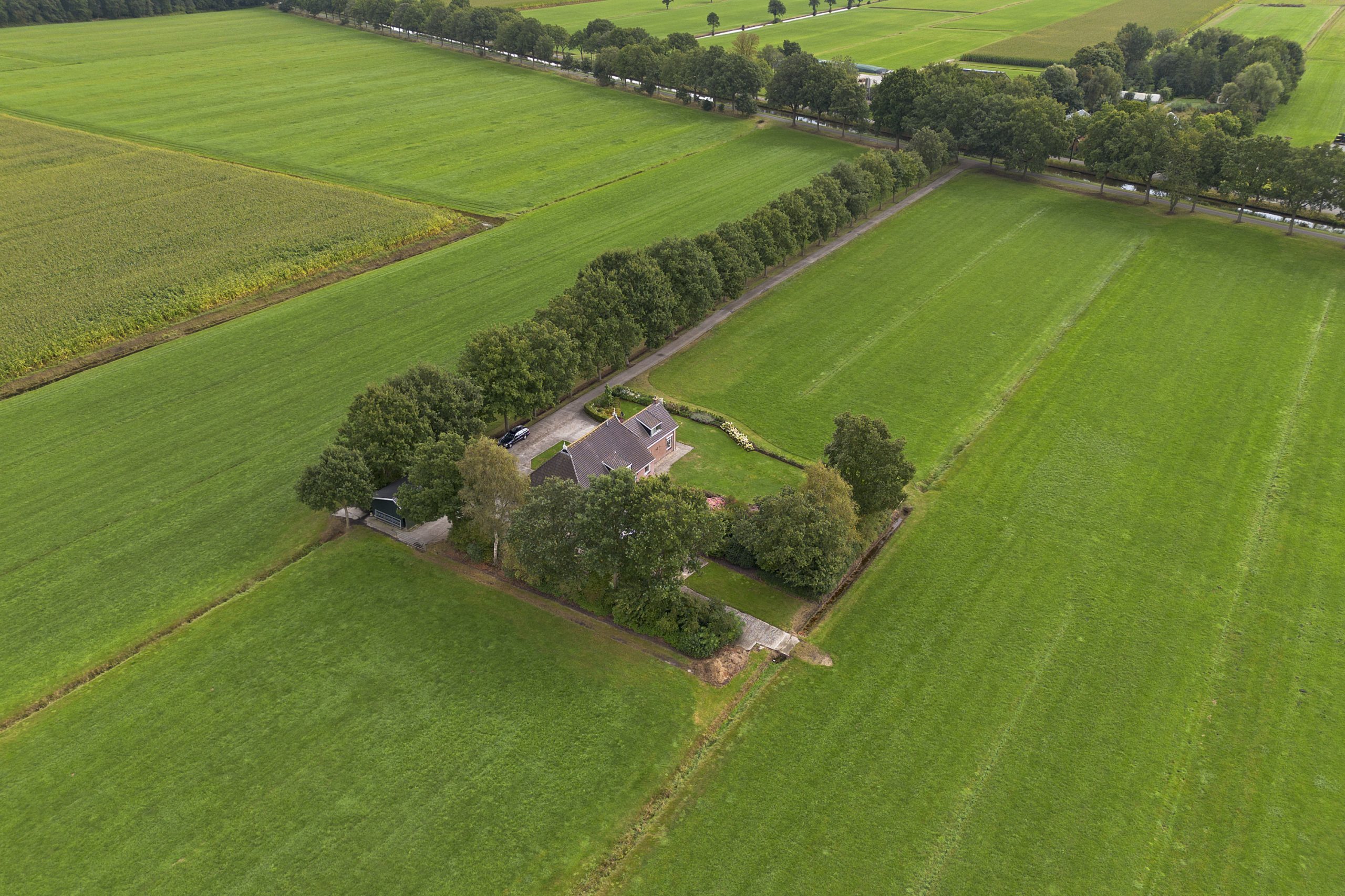Aan weerzijden van de oprit en achter de woonboerderij liggen een aantal percelen cultuurgrond. Het betreft hier vruchtbare zandgrond.