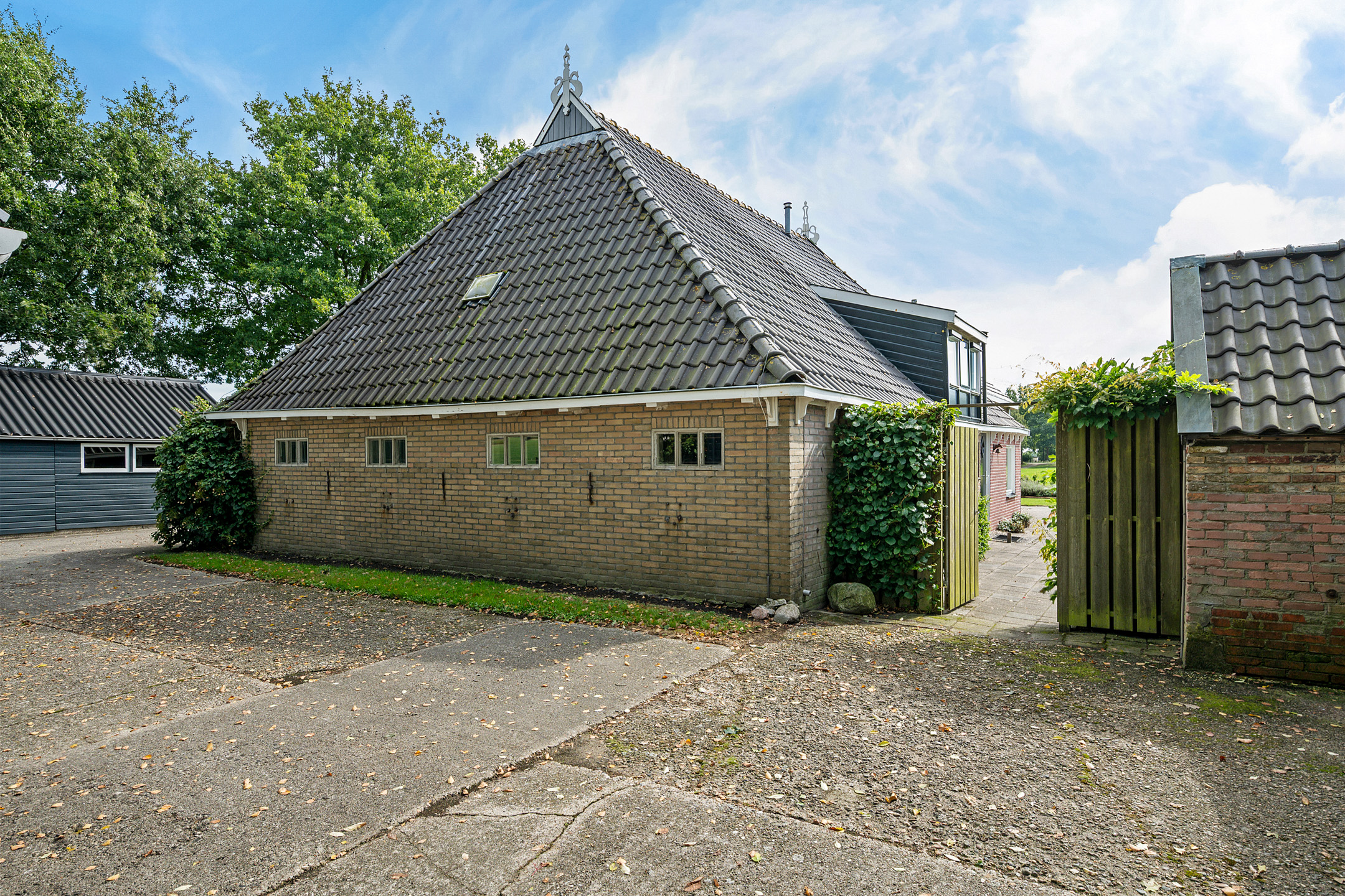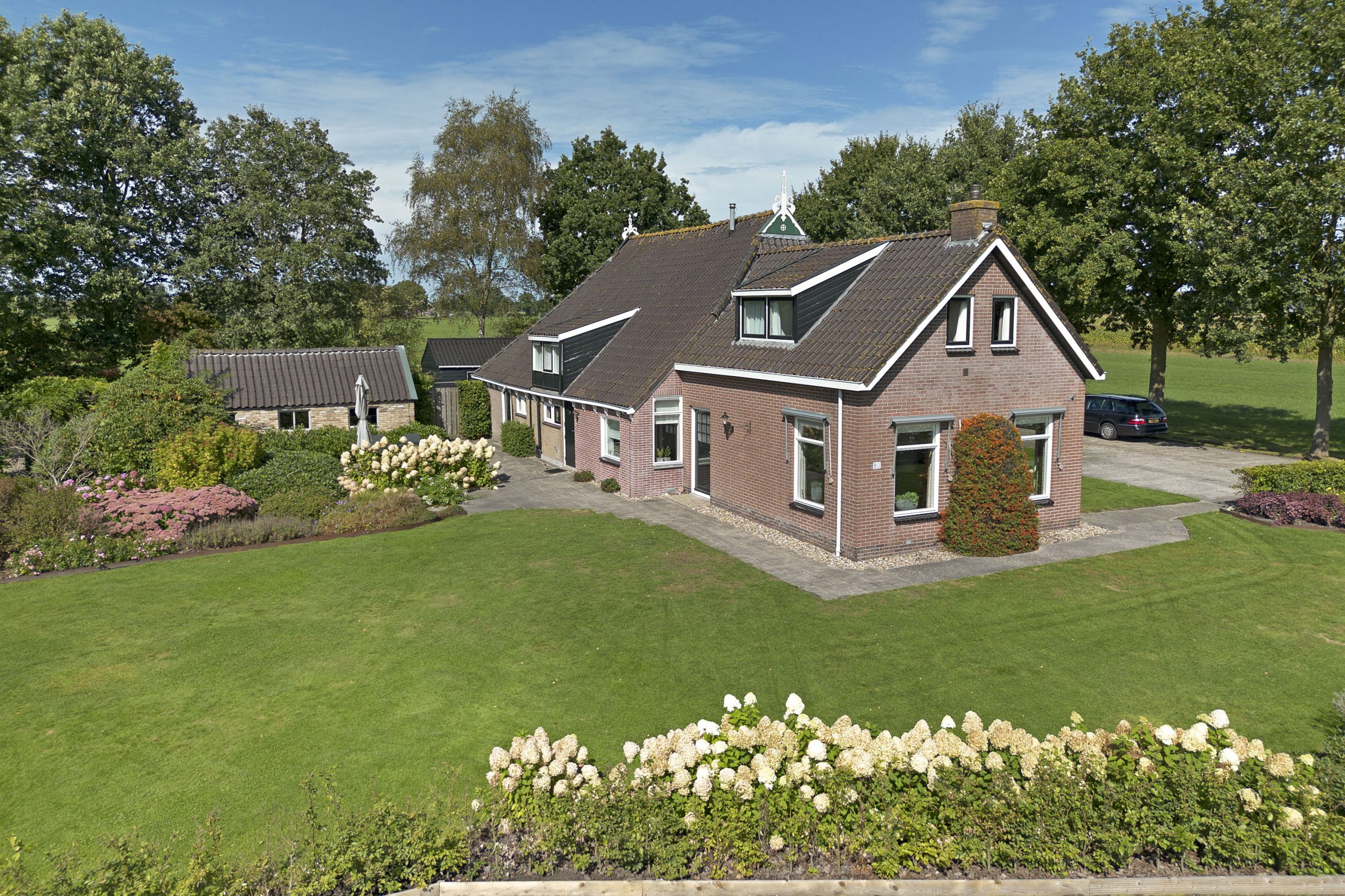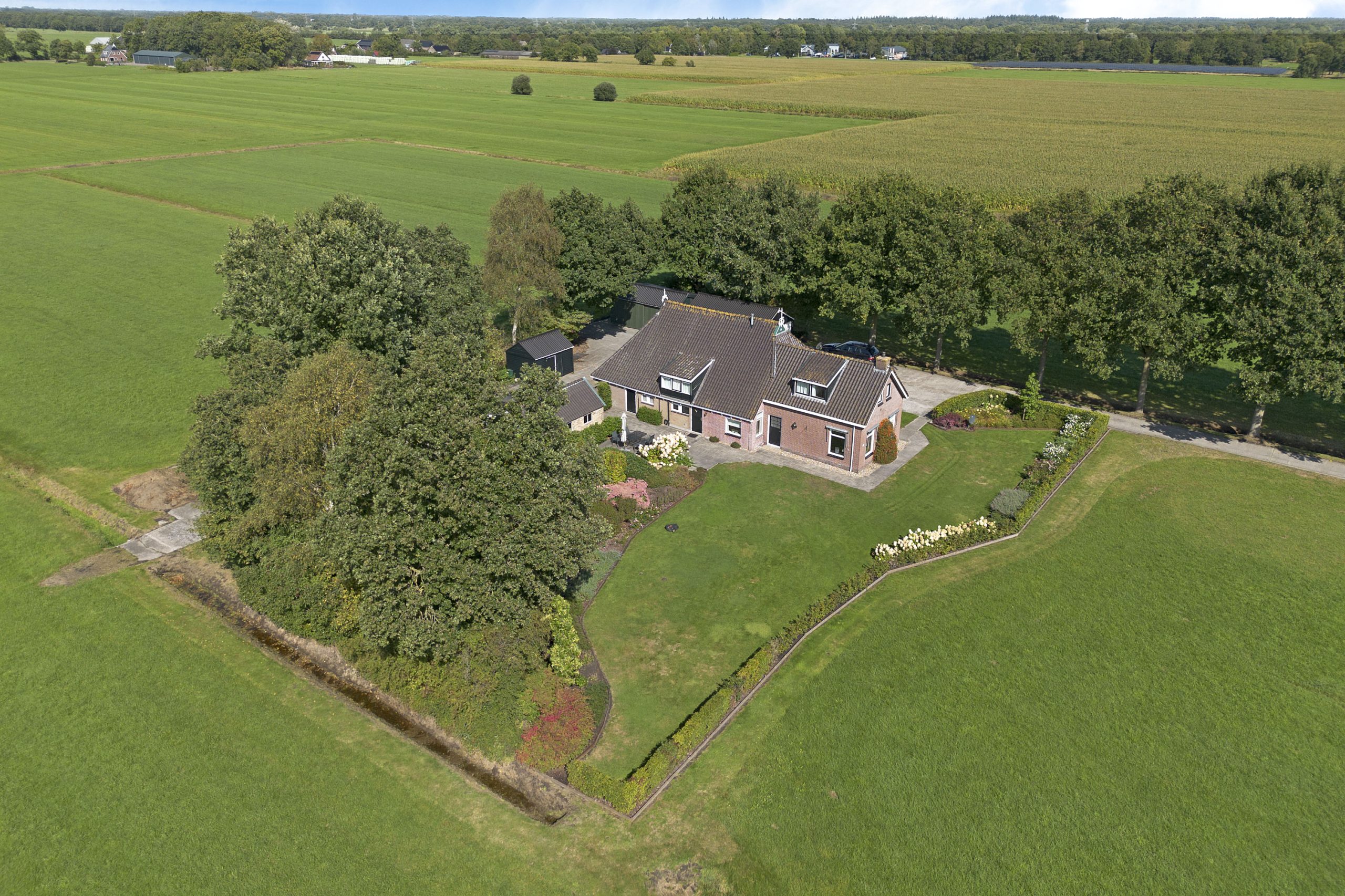 Landelijk wonen nabij de Opsterlandse Compagnonsvaart en met een eigen oprijlaan ligt deze woonboerderij op een mooie locatie nabij het dorp Wijnjewoude.  Voor de 1 betreft het een opknapper, voor een ander zal het een bouwterrein zijn. De  woonboerderij is namelijk gedateerd, heeft deels een te laag plafond en voldoet niet aan de eisen des tijds.  Naast het woongedeelte en achterhuis (voormalig bedrijfsgedeelte) staan er nog een aantal vrijstaande schuurtjes op het erf en een ruime garage. De woonboerderij is omringd door een mooi aangelegde tuin. Er is naast het erf (ruim 2.500 m2) circa 5.45.85 hectare landbouwgrond aanwezig (totaal dus ruim 5,7 hectare).  De mogelijkheid bestaat om de woonboerderij zonder weiland te kopen. Deze bijzondere locatie leent zich voor diverse mogelijkheden. Zo zou de locatie ook geschikt te maken zijn als B&B, bedrijvigheid aan huis (woon/werken), dubbele bewoning en/of hobbymatige veehouderij.
